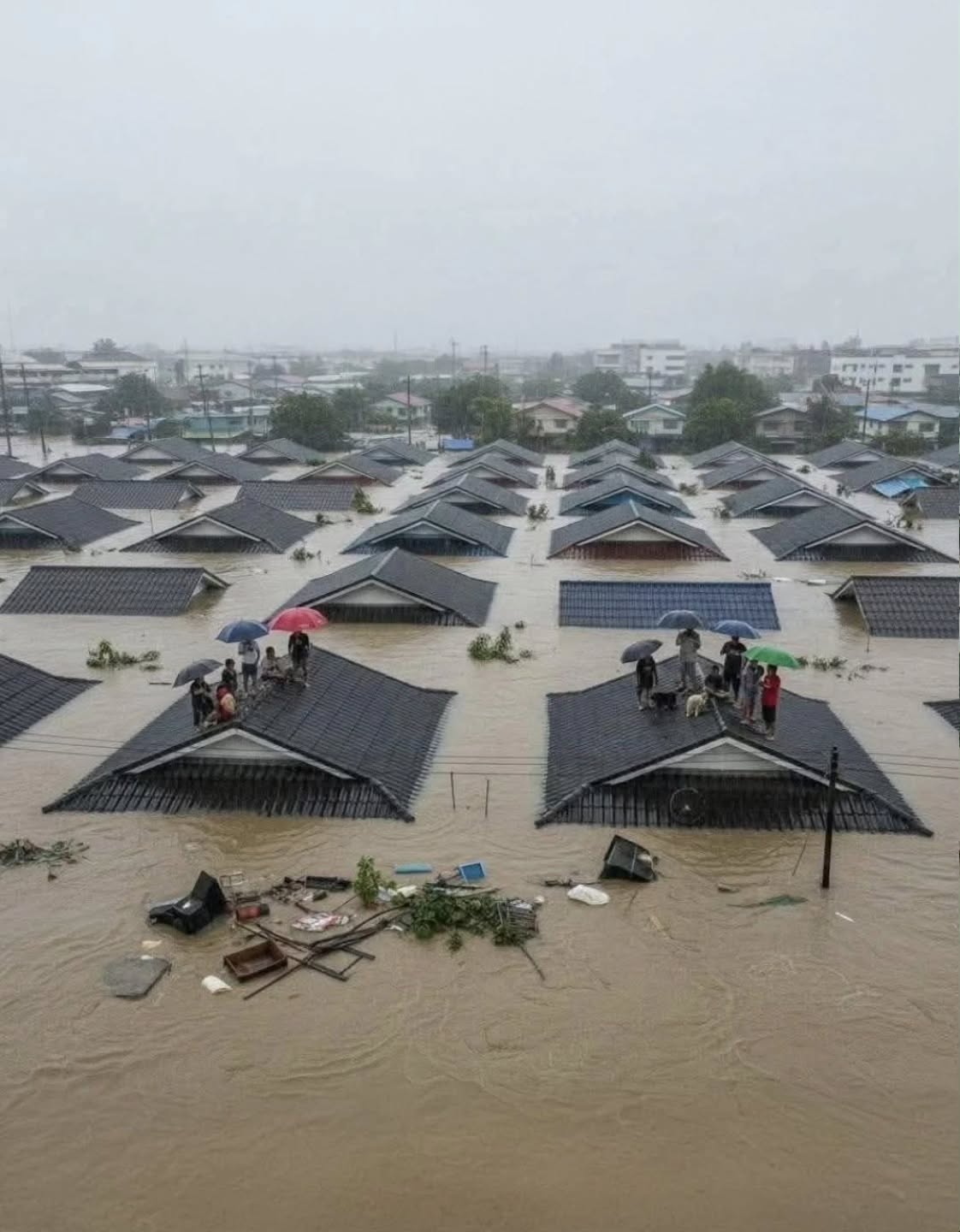 บ้านถูก น้ำท่วม พริบตา เหลือเพียงหลังคา
