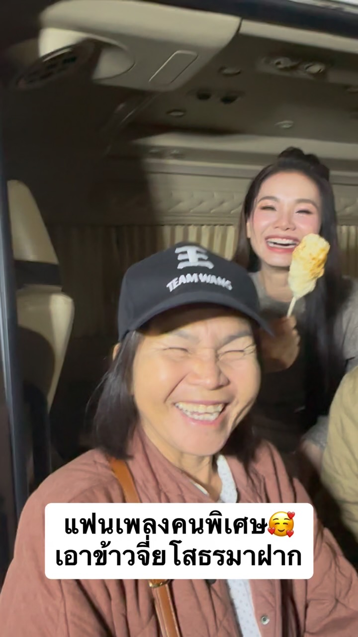 แฟนเพลงคนพิเศษ🥰 เอาข้าวจี่ยโสธรมาฝาก🤭รอถ่ายรูปเป็นคิวสุดท้าย☺️ เมื่อคืนนี้ แม่นิดกับเพื่อนๆของแม่ ขับรถมาจากอุบลฯ มาให้กำลังใจลูกสาว มาชมโชว์ใหม่ไกลถึง จ.ยโสธร กันเลยทีเดียว ( ข้าวจี่มันเย็น แบบเหนียว เคี้ยวจนกรามค้าง🤭😆🤣555 )