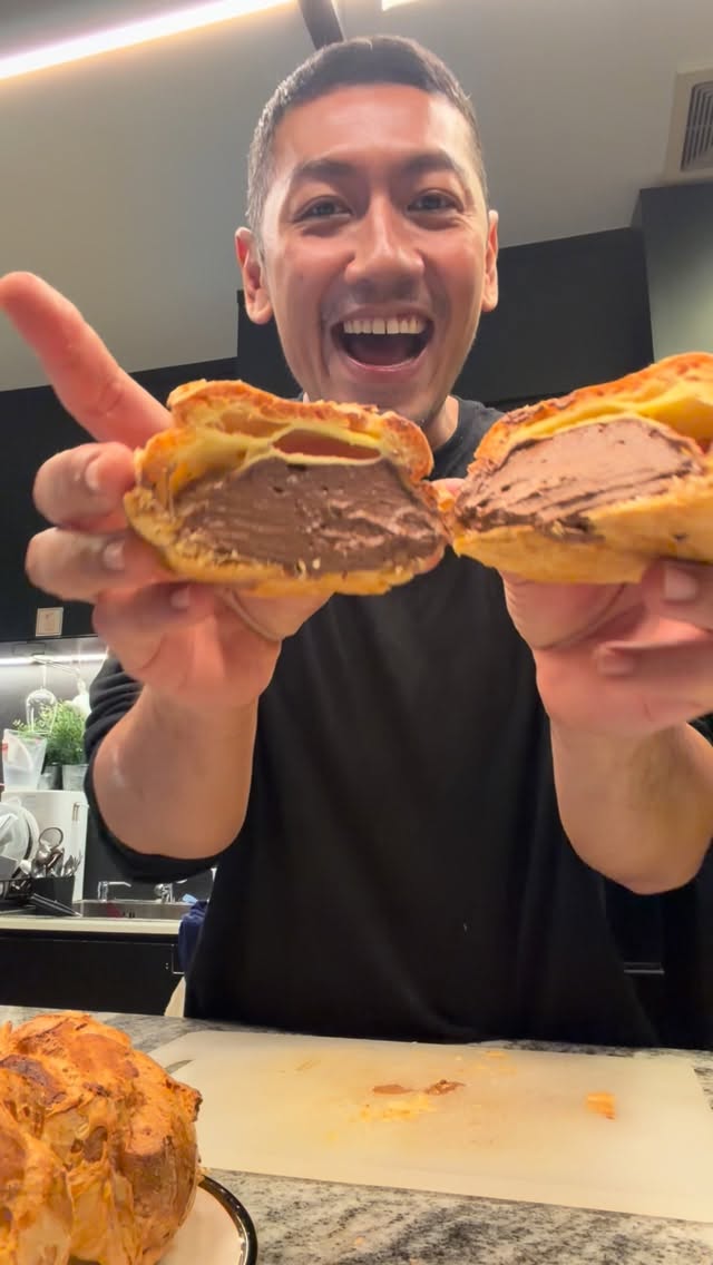 #ทำขนมพร้อมบ่นบ้า วันนี้ขอทดลองชูส์ไส้ครีมชอคโกแลตอีกครั้งหนึ่ง รู้สึกว่าทำได้สวยขึ้น ซึ่งก็ต้องเตือนกันอีกครั้งหนึ่งว่า สวยขึ้นไม่ได้แปลว่าสวยแล้ว ข้อคิดนี้ใช้ได้กับทั้งอาหารและคน #homecooking #homebaker #chouxalacreme