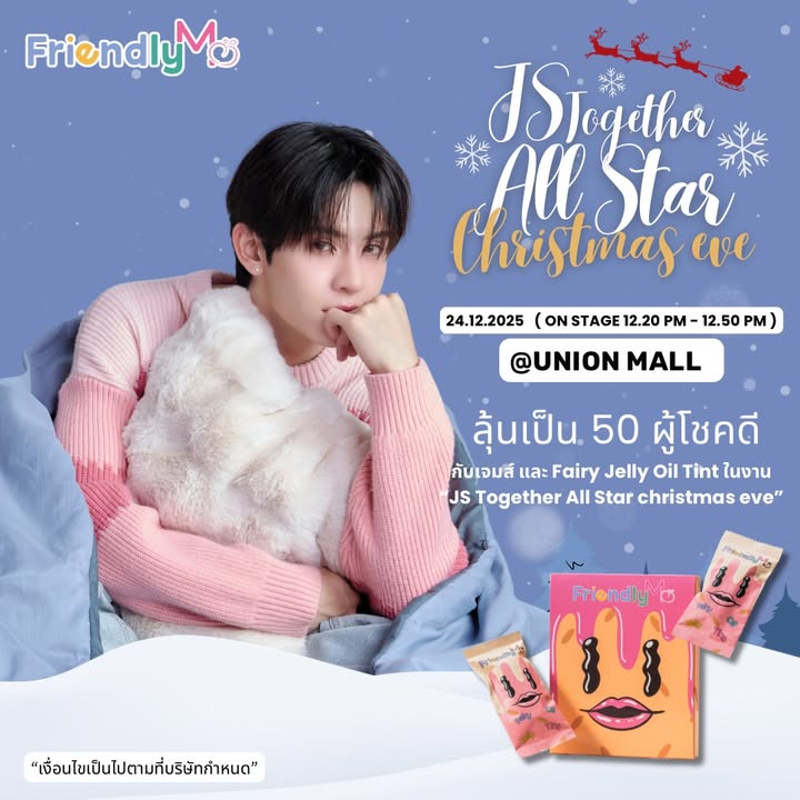 พร้อมมา Christmas Eve with Jamessu กันหรือยังครับทุกคน กับงาน JS Together All Star Christmas Eve ที่จะจัดขึ้นในวันที่ 24 ธันวาคมนี้ ณ ศูนย์การค้า Union Mall โดยทุกคนสามารถลุ้นเป็นผู้โชคดี 50 ท่านที่จะได้รับเบเนฟิตสุดพิเศษ และอีก 10 ท่าน ที่จะได้ Vdo Call กับเจมส์อีกด้วย สามารถร่วมกิจกรรมได้ถึงวันที่ 18 ธันวาคมนี้นะครับ รอฉลองคริสต์มาสอีฟกับทุกคนนะครับ 🎄✨