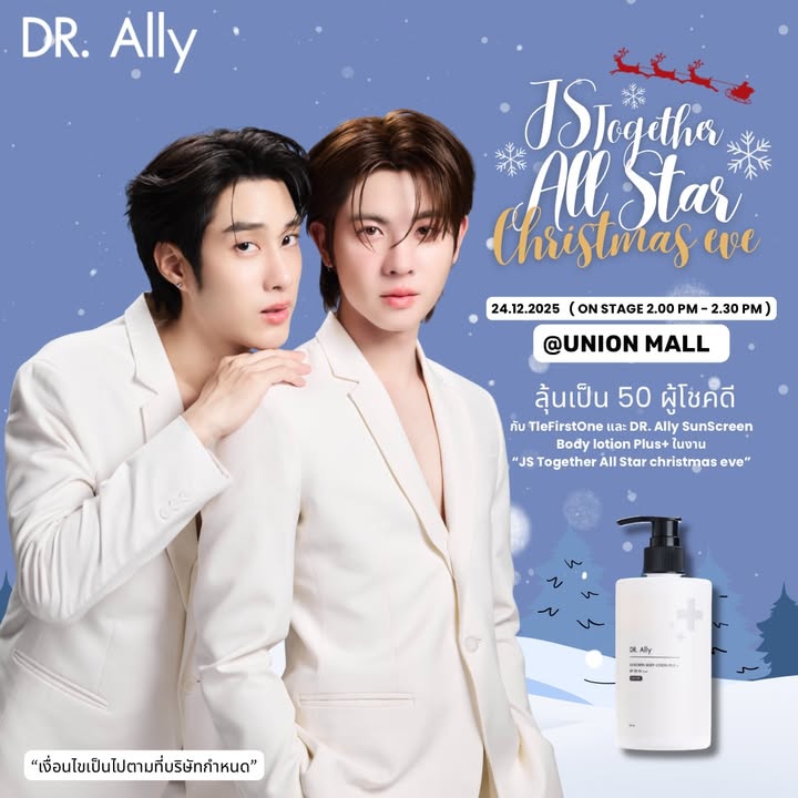 สวัสดีครับคริสต์มาสอีพนี้พวกเรา 2 คนก็อยากจะชวนทุกคนมาร่วมงาน JS Together All Star Christmas Eve ที่จะจัดขึ้นในวันที่ 24 ธันวาคมนี้ ณ ศูนย์การค้า Union Mall ยังมีกิจกรรมให้ทุกคนร่วมลุ้นเป็น 50 ผู้โชคดีที่จะได้รับเบเนฟิตสุดพิเศษกับเติ้ลเฟิร์สวัน และอีก 10 ผู้โชคดีที่จะได้ Vdo Call ด้วยกัน สามารถร่วมกิจกรรมได้ถึงวันที่ 21 ธันวาคมนี้นะครับ 🎄
