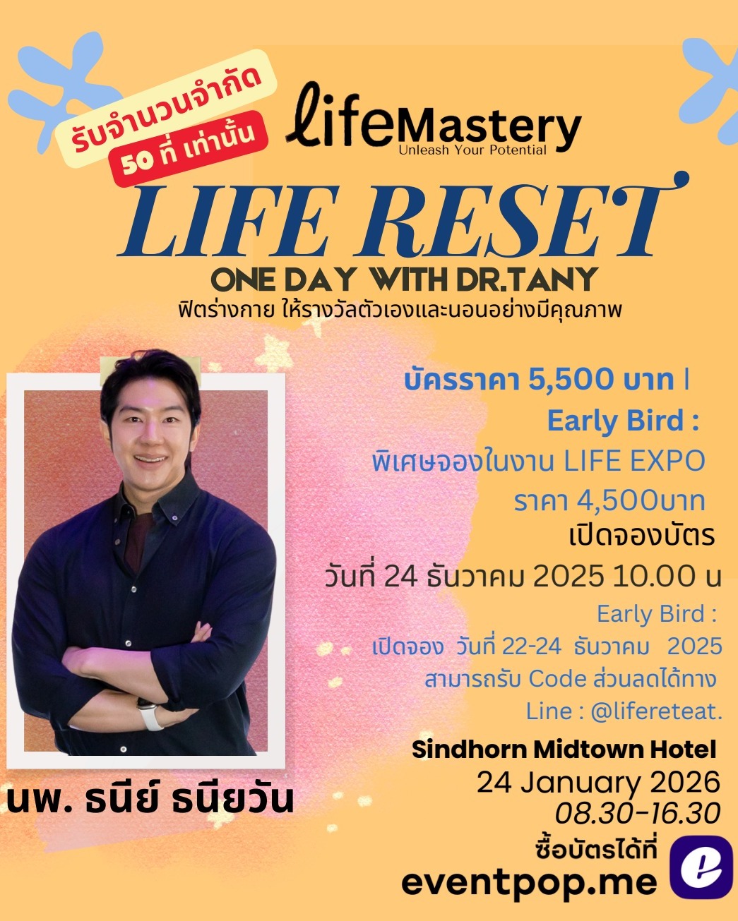 Life Reset คือหนึ่งวันพิเศษ ที่ Dr. Tany @_doctortany_ จะพาคุณกลับมาอ่านสัญญาณร่างกายของตัวเอง เข้าใจการเคลื่อนไหวที่เหมาะกับคุณ