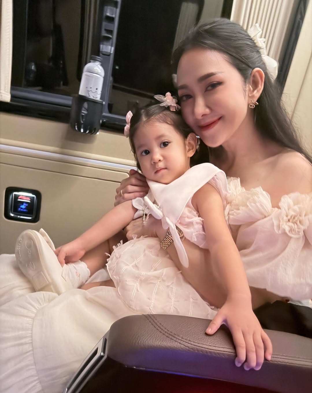 หนูแต่งตัวสวยตั้งแต่ตอนเย็น ชุดสวยของหนูน้าหวานก็ซื้อให้ค่ะ หนูเตรียมตัวไปร่วมงานแต่งแสดงความยินดีกับน้าหวานน้าแซม แต่หนูฝืนหนังตาไม่ไหว ความง่วงทำให้หนูหลับก่อนถึงงาน ทั้งพ่อทั้งหนูแต่งตัวเก้อ ไม่ได้ลงไปหาน้าหวานเลยค่ะ🥺😴 @nammwann
