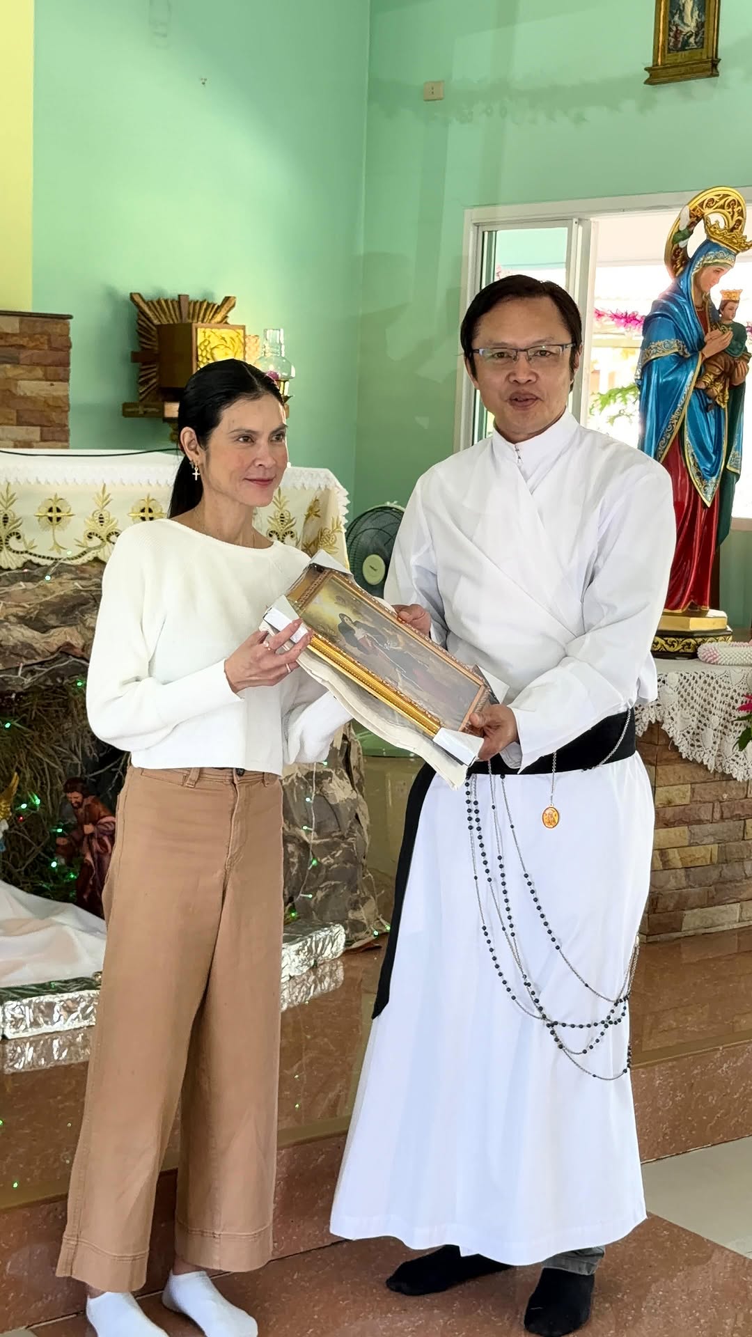 นำรูปแม่พระ และบทสวดแก้ปม ไปแจกให้ทุกคน ที่วัดนักบุญโมนิกา จังหวัดน่าน เป็นเป็นตัวแทนของกลุ่ม evergreen ค่ัะ