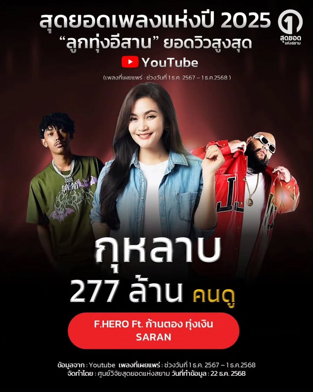 ขอบคุณทุกแรงสนับสนุนที่ทำให้ในปี 2025 นี้ เพลง กุหลาบ ได้ขึ้นเป็นเพลงไทยที่มียอดวิวสูงที่สุดใน YOUTUBE และหากนับจนถึงวันนี้ กุหลาบ ก็มียอดวิวใน YOUTUBE 279 ล้านวิว ขึ้นแซง เสือสิ้นลาย เพลงที่เคยเป็นเพลงที่มียอดวิวสูงที่สุดของผมเป็นที่เรียบร้อยแล้ว