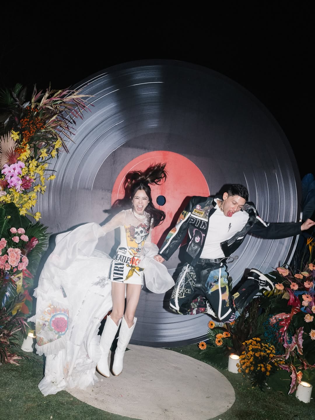 Thank you @drycleanonly_bkk @bestisnotbad for creating this piece so perfectly from the very first draft.🥳 ขอบคุณพี่เบสมากๆการได้ไปดู fashion show ของพี่ครั้งนั้นจุดประกายชุดแต่งงานชุดนี้ให้กับมายด์มากๆ ดีเทลทุกๆอย่างมีความหมายกับพวกเรา แพทช์วงต่างๆที่อยู่บนชุดล้วนแต่เป็นวง/ศิลปินที่พวกเราได้ไปดูกันมาแล้วทั้งหมด (แม้เราจะได้ดู Paul McCartney แค่คนเดียวใน Beatles ก็ตาม🤣) มันมีความหมายกับพวกเรามากจริงๆค่ะ❤️🖤🤍
