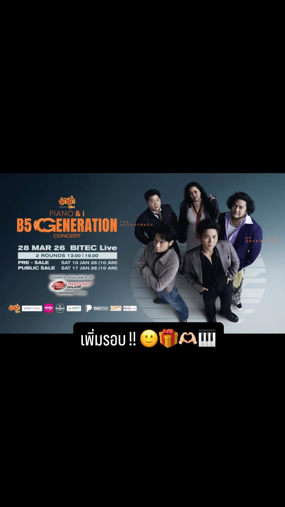 ข่าวดีรับปีใหม่ 🎁 เราจะได้เจอกันมากขึ้นในวันอาทิตย์ที่ 29 มีนาคม 2569 กับ PIANO & i B5 Generation Concert รอบการกุศล โดยคณะแพทยศาสตร์ศิริราชพยาบาล ม.มหิดล และศิริราชมูลนิธิ 🫶🏻 มาร่วมกันส่งต่อพลังดีๆด้วยกัน รอติดตามรายละเอียดได้เร็วๆนี้นะครับ