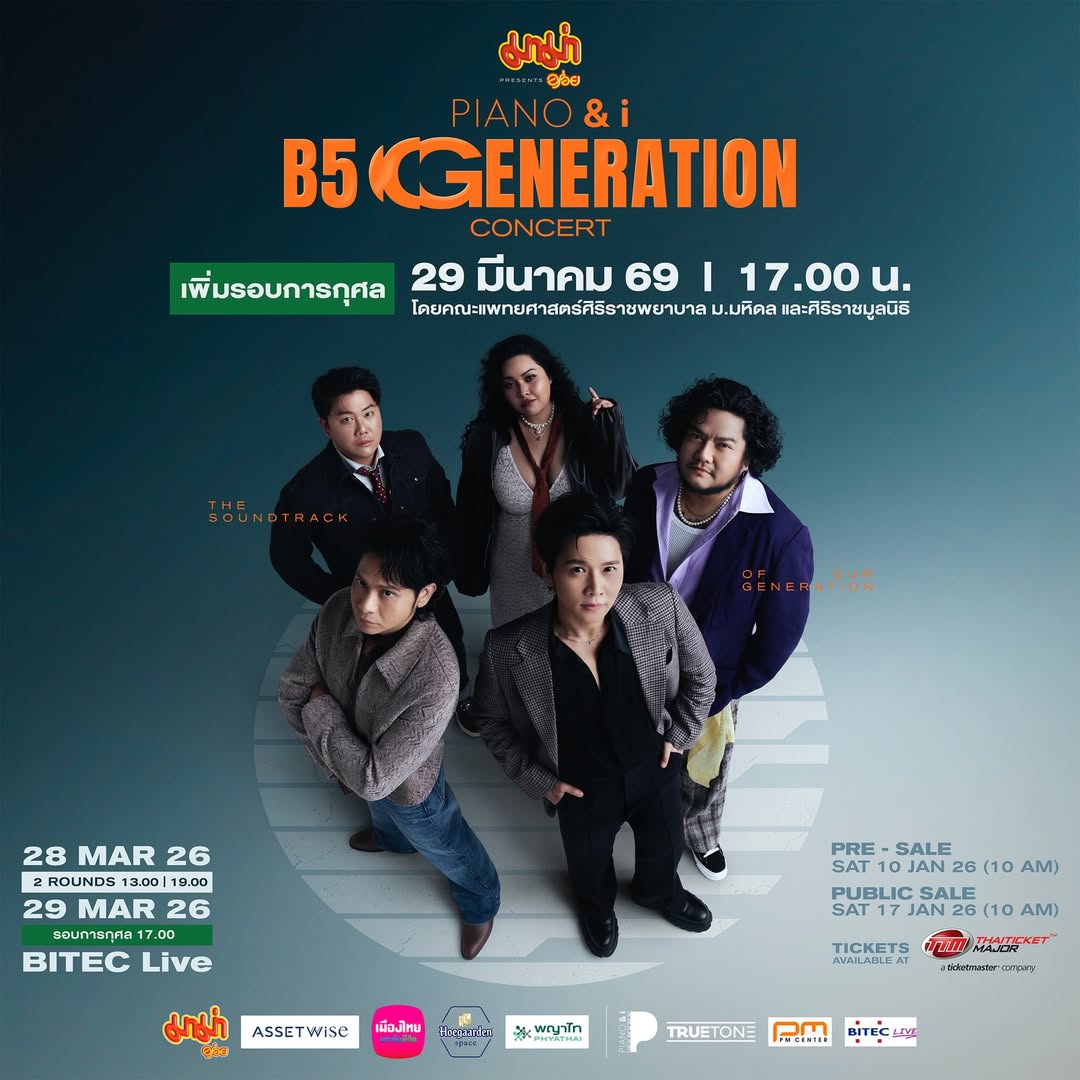 ข่าวดีรับปีใหม่ครับ 🙂🚨 เพิ่มรอบ อาทิตย์ที่ 29 มีนาคม 2569 🚨 กับ PIANO & i B5 Generation Concert รอบการกุศล โดยคณะแพทยศาสตร์ศิริราชพยาบาล ม.มหิดล และศิริราชมูลนิธิ