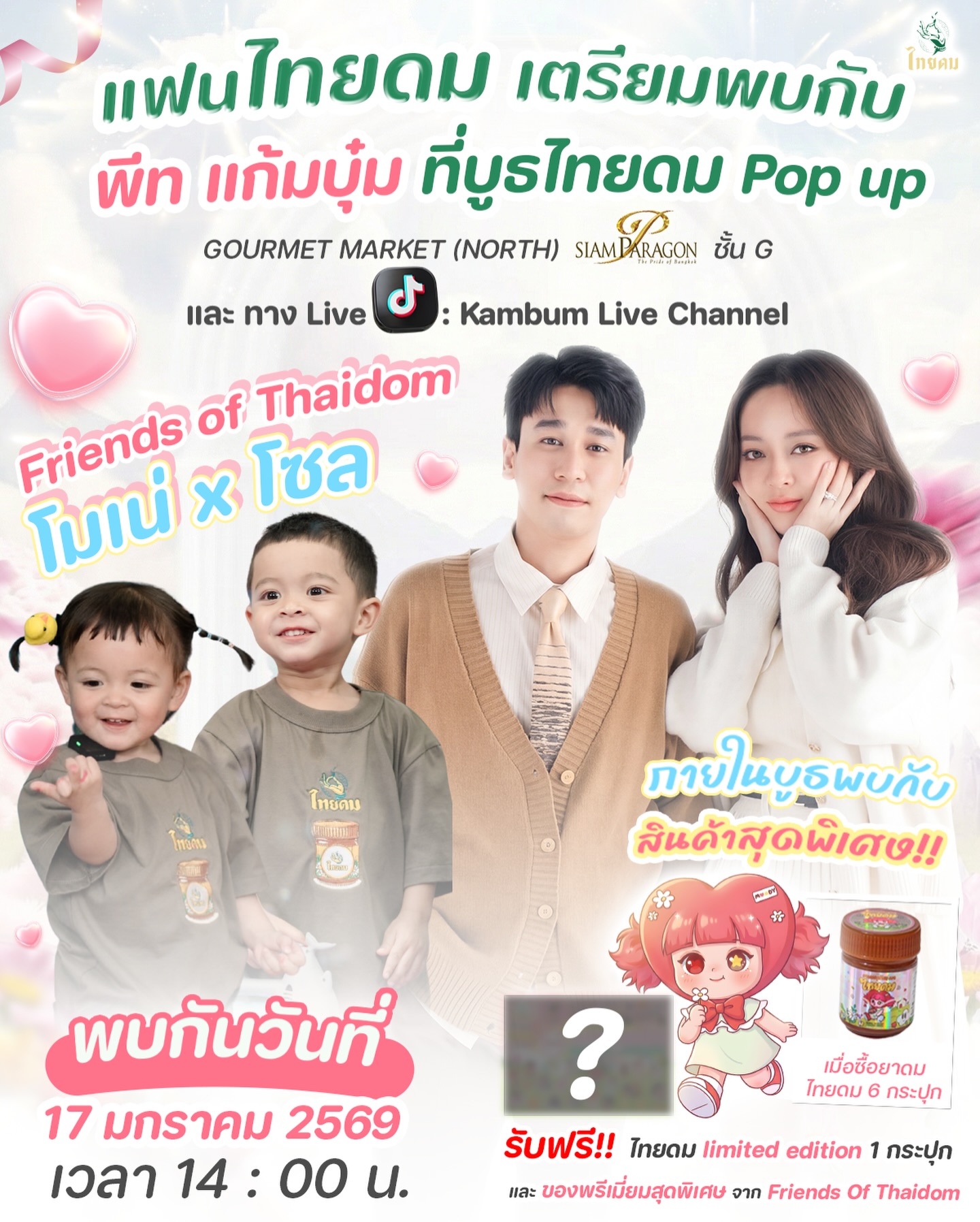 พี่ๆ มีไทยโดมม้ายยย!!! เตรียมพบกับ ต้าวแฝดโซลโมเน่ X แก้มพีท กับอีเว้นของ Friends Of Thaidom นอกสถานที่ครั้งแรก @ สยามพารากอน ชั้น G โซนลานจอด Super Car วันที่ 17 มกราคม 2569 นี้ เวลา 14.00-16.00 น. พร้อมกับโปรโมชั่นสุดพิเศษมากๆ เฉพาะช่วงเวลาอีเว้นเท่านั้น (แต่ใครมาไม่ได้ แอบบอกว่ามี Live ด้วยที่ Kambum Live บน Tiktok จ้าา) ~ พี่ๆตามใจโมเน่ม้ายยย!! ~ #แก้มพีท #ไทยดม #โซลโมเน่