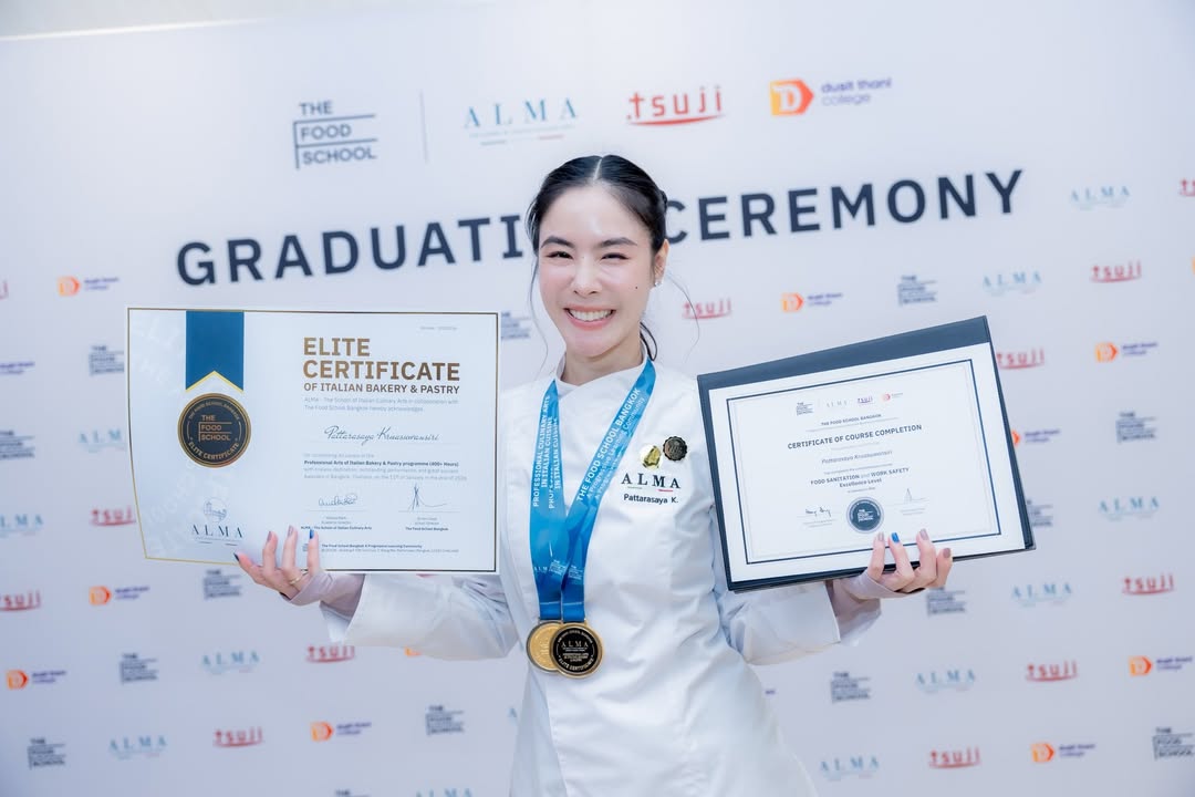 I feel incredibly fulfilled being surrounded by desserts and doing what I love, every single day❤️🥂👩🏻🍳 Thank you for making this journey so special @thefoodschoolbkk @angelobelluzzi2025new #alma #almapastry #cakebypeak