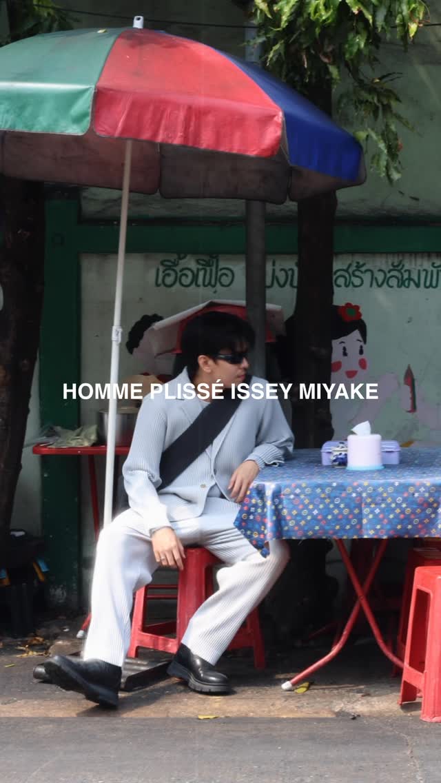 Walking in the sun with HOMME PLISSÉ ISSEY MIYAKE.