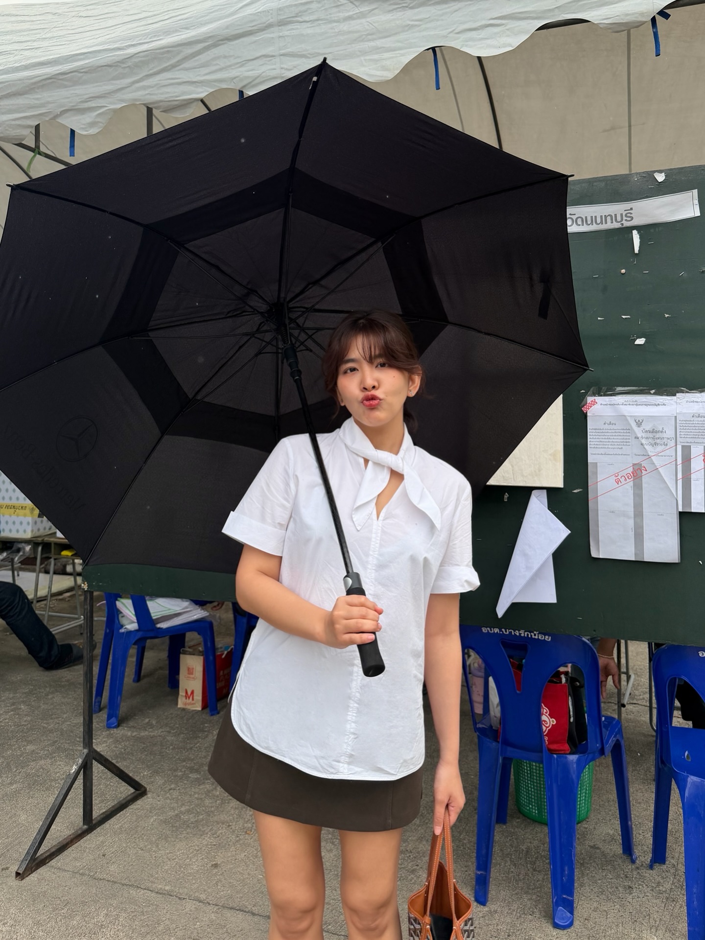 แต่เราก็มาเลือกตั้งได้นะทุกคน ยังมีเวลา หีบปิด5 โมงนะ แดดออกแล้วเรามาเลือกตั้งกันเถอะ อย่าลืมกา3 ใบนะ ไปกัน พี่สาว
