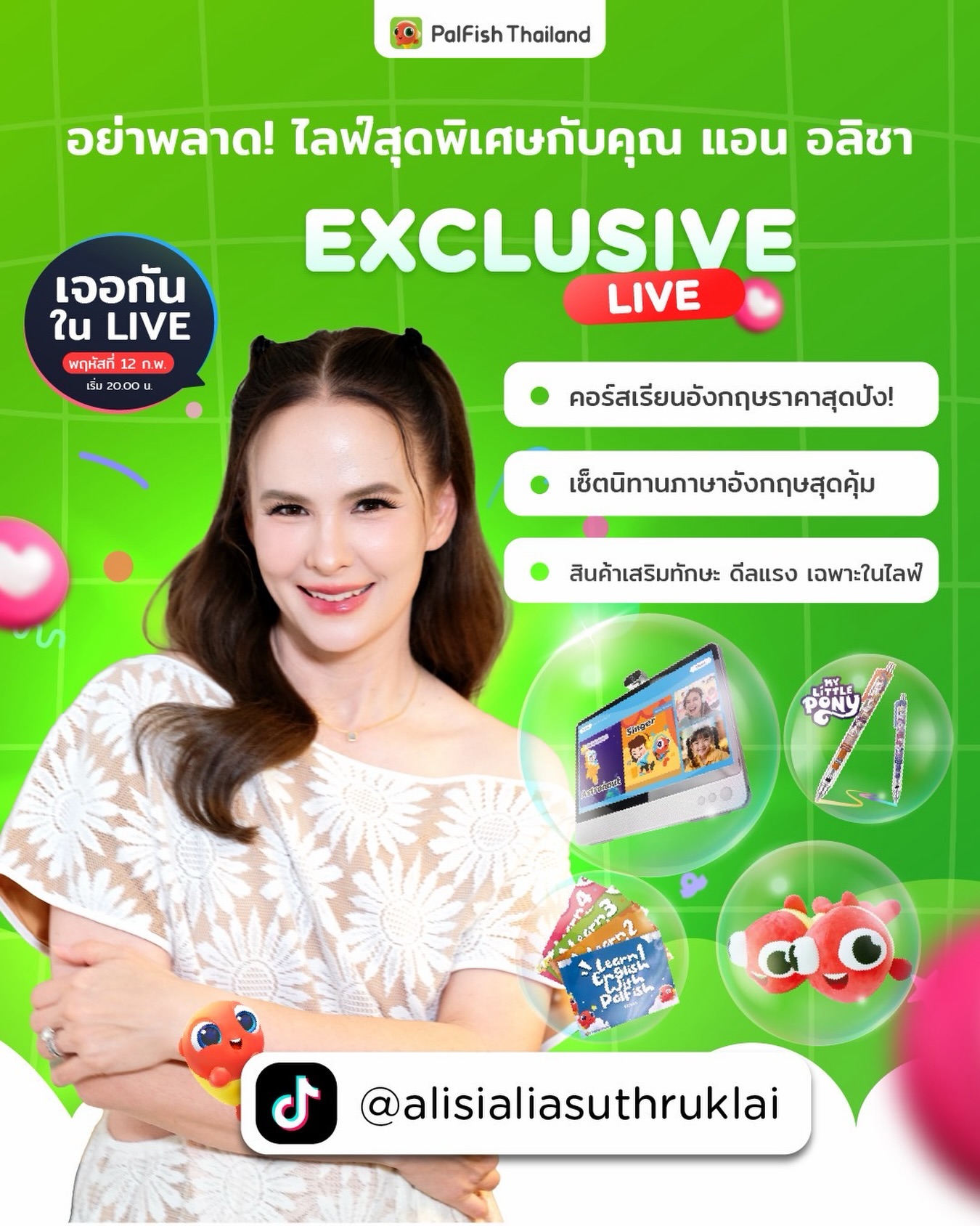 แม่ๆเตรียมเลยค่ะ ใครกำลังหาคอร์สเรียนภาษาอังกฤษให้ลูกๆ พบกันวันพรุ่งนี้20:00 Tiktok แอนอลิชา X PalFish 💚 ทดลองเรียน69บาท!!!!!