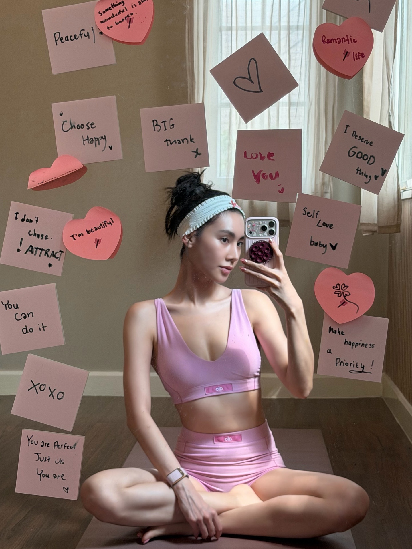Mirror talks, soft light, and post-it notes that say what my heart needs to hear: you’re doing just fine 💗