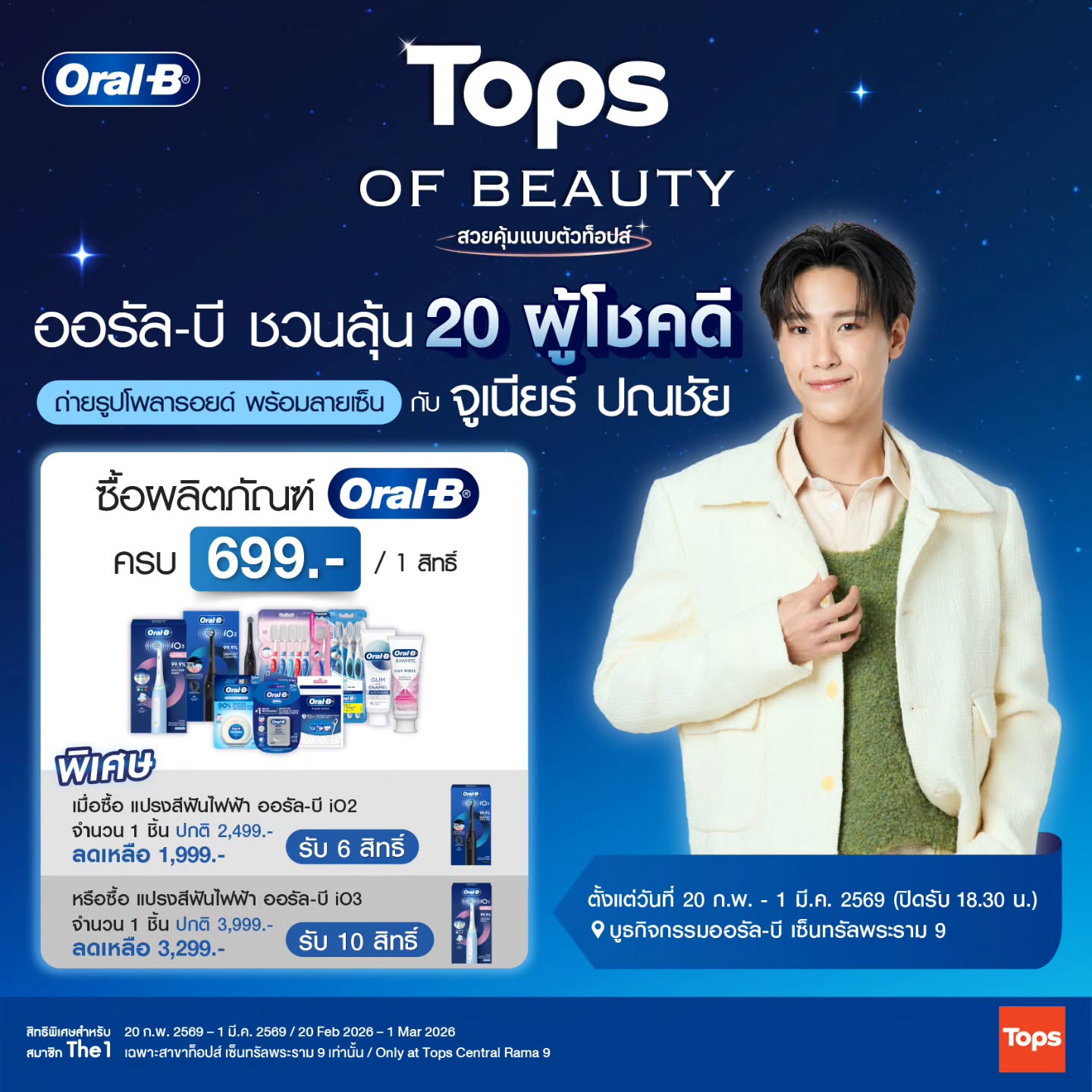 เพียงมาช้อปผลิตภัณฑ์ดี ๆ จาก Oral-B ครบ 699 บาท ก็มีสิทธิ์ลุ้นเป็น 1 ใน 20 ผู้โชคดี ที่จะได้ถ่ายรูปพร้อมลายเซ็นต์กับผมแบบ Exclusive สุดๆ