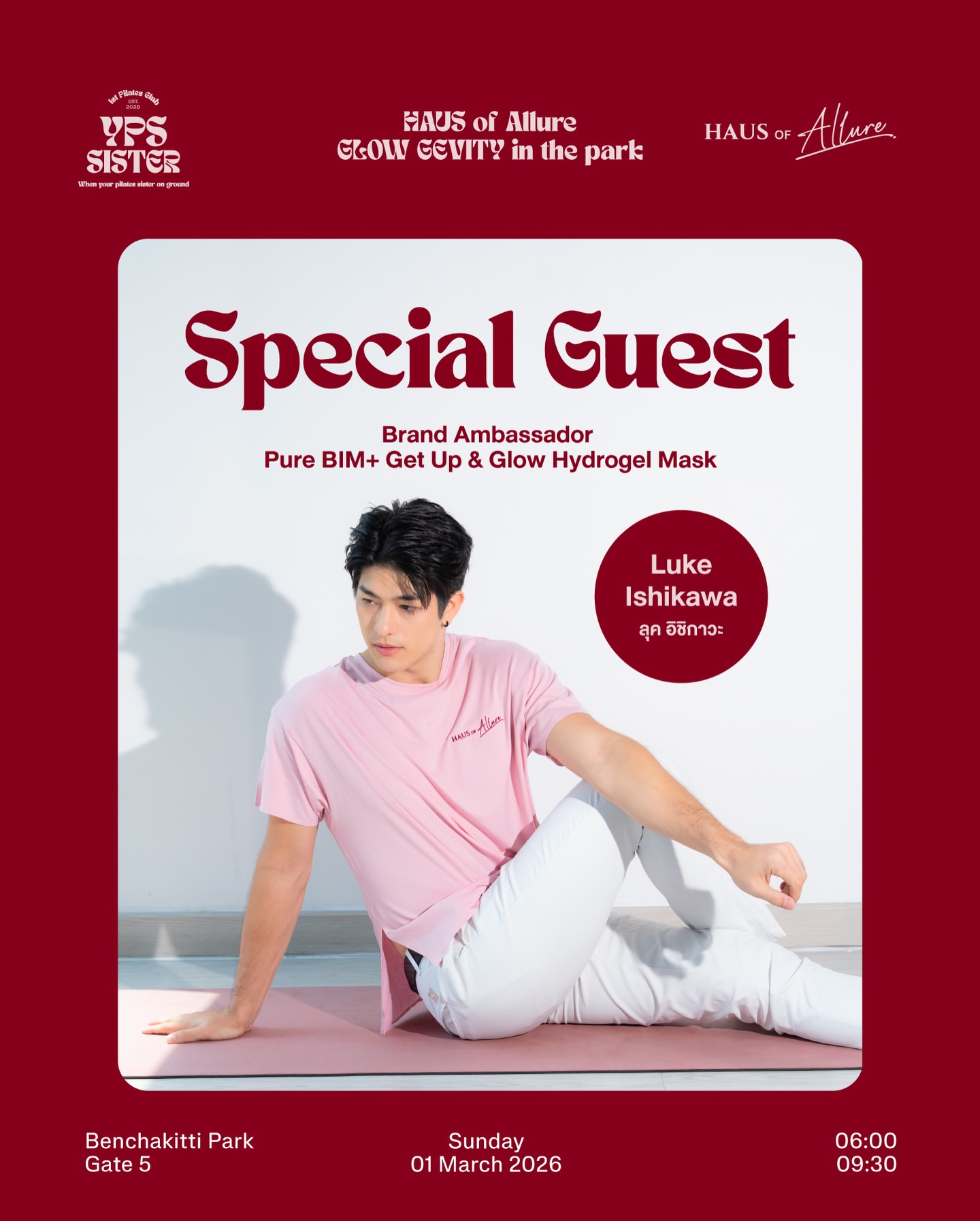 ✨ ครั้งแรกของ Haus of Allure กับการ ‘มาส์กหน้า x พิลาทิส’ กลางสวนเบญฯ งานนี้หน้าต้องโกลว์ หุ่นต้องเป๊ะ ใครไม่อยากพลาดมากกก
