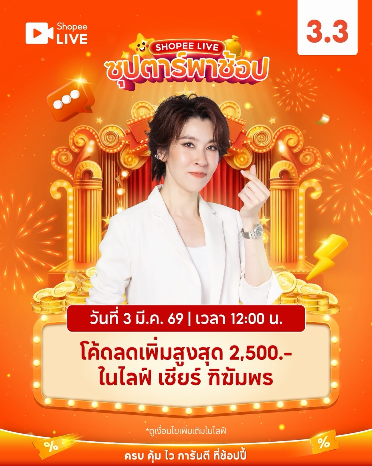 กลับมาทำงานแล้วว เที่ยงนี้ โค้ดลดเพิ่มสูงสุด 2,500.- ในไลฟ์ เชียร์ ฑิฆัมพร:https://th.shp.ee/eprySXpE