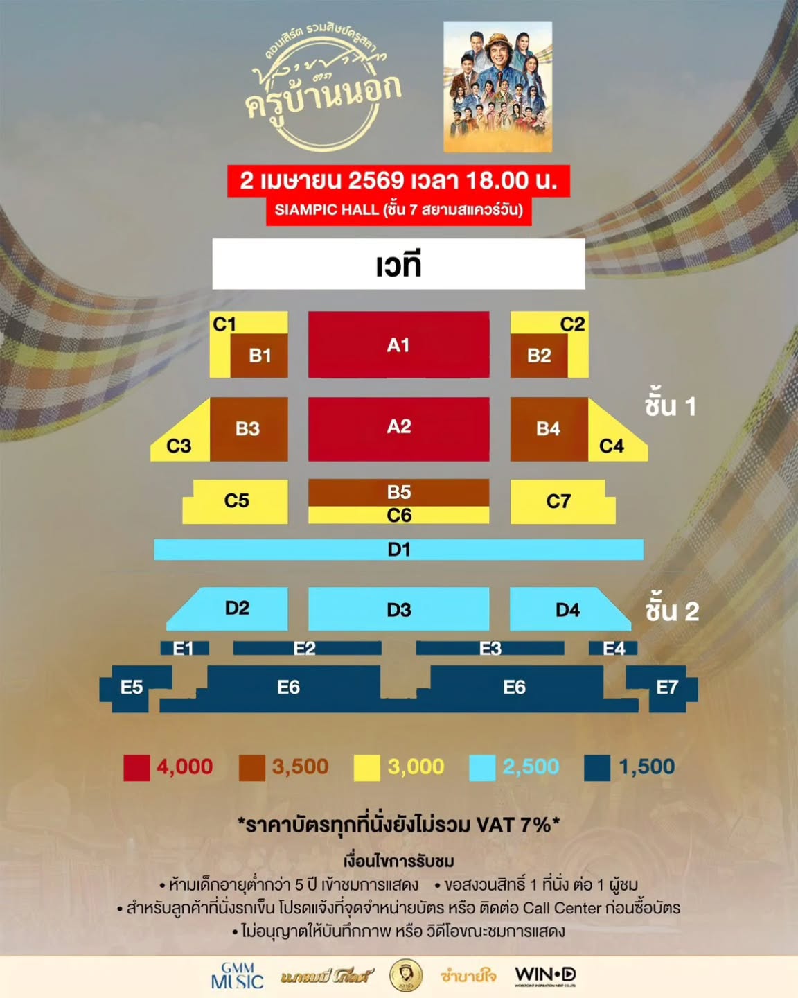 🎟 บัตรราคา 4,000 / 3,500 / 3,000 / 2,500 / 1,500 บาท