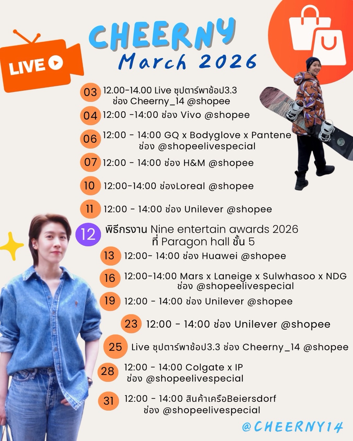 ตารางงานเดือนนี้ค่า เผื่อได้เจอกันนะ #มิตรรักCheerClub 💙