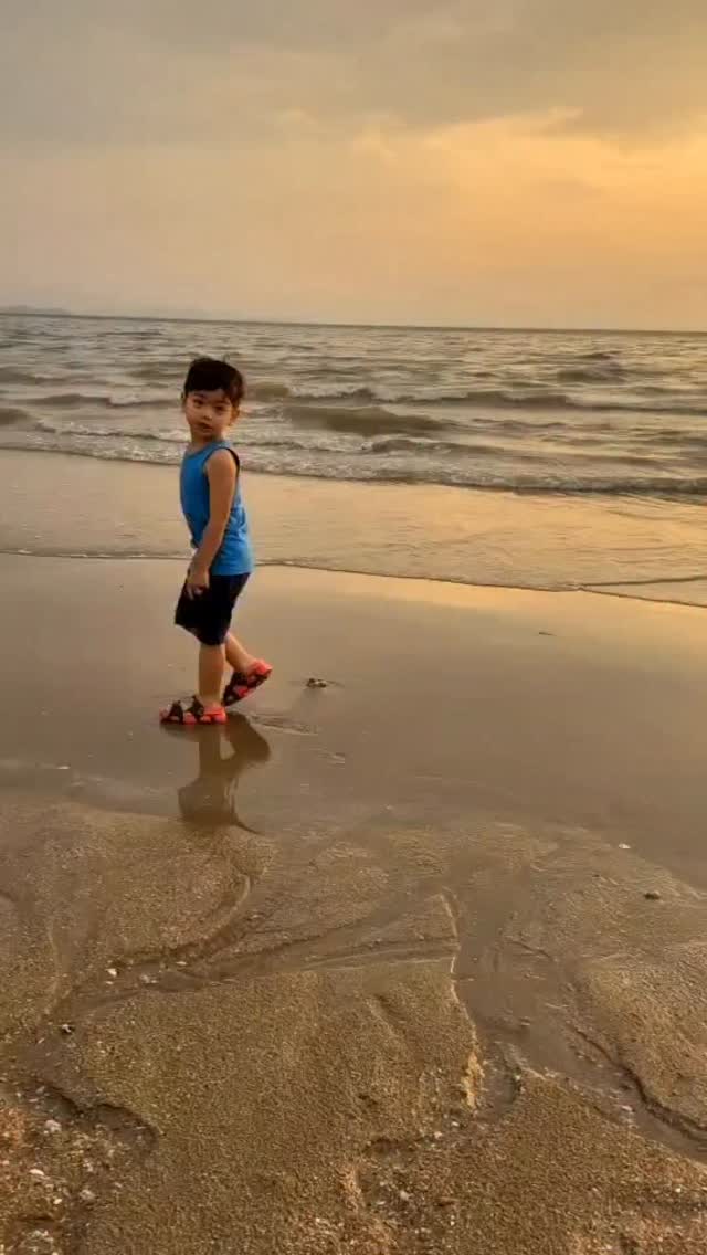 เดี๋ยวนี้แอ็คติ้งใหญ่มากค่ะ 🥰 เหมือนจะกลัวน้ำทะเล แต่พอผ่านไป 3 นาที 😅😅😅 #Alex #ทะเล