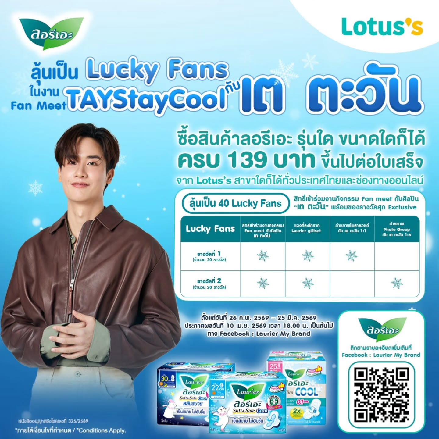 • ซื้อสินค้าภายใต้แบรนด์ลอรีเอะที่ร้าน Lotus’s โดยทุก 139 บาท ต่อ 1 ใบเสร็จ เท่ากับ 1 สิทธิ์
