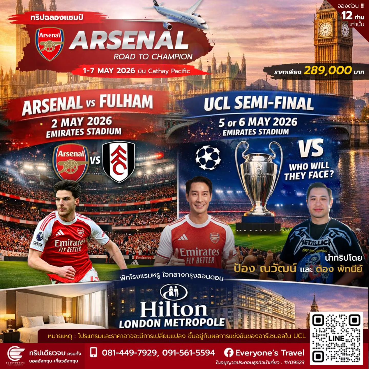 **โปรแกรมและราคาอาจมีการเปลี่ยนแปลง ขึ้นอยู่กับผลการแข่งขันของอาร์เซนอลใน UCL**