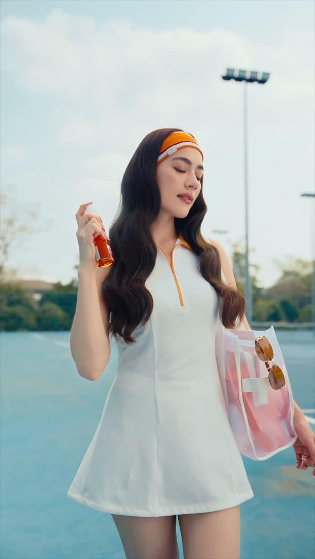 A quick spray before my tennis day🎾☀️Dove UV Ferulic Bi-Phase Serum Oil 🧡 กันแดดผมใหม่จากโดฟ! new fave item ที่คิมใช้ตลอดก่อนเจอเเดดค่ะ ✨
