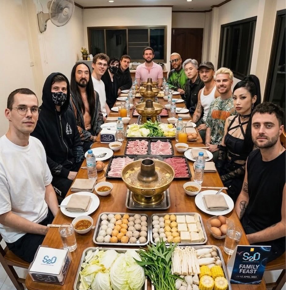 All landed last night and asked for something authentic… 🇹🇭 so we said, let’s go Moo Kra Ta 🥩🔥 And even Steve said: “Aroi mak”🥵 เปิดตี้หมูกะทะเอสยี่สิบ สตีฟบอก “อร่อยมากกกกก” ส่วน Zedd อึ้งง! นั่งหัวโต๊ะจ่ายตังค์ Kygo & Gryffin ไม่มาแอบซ้อมโชว์อยู่ 555 😏