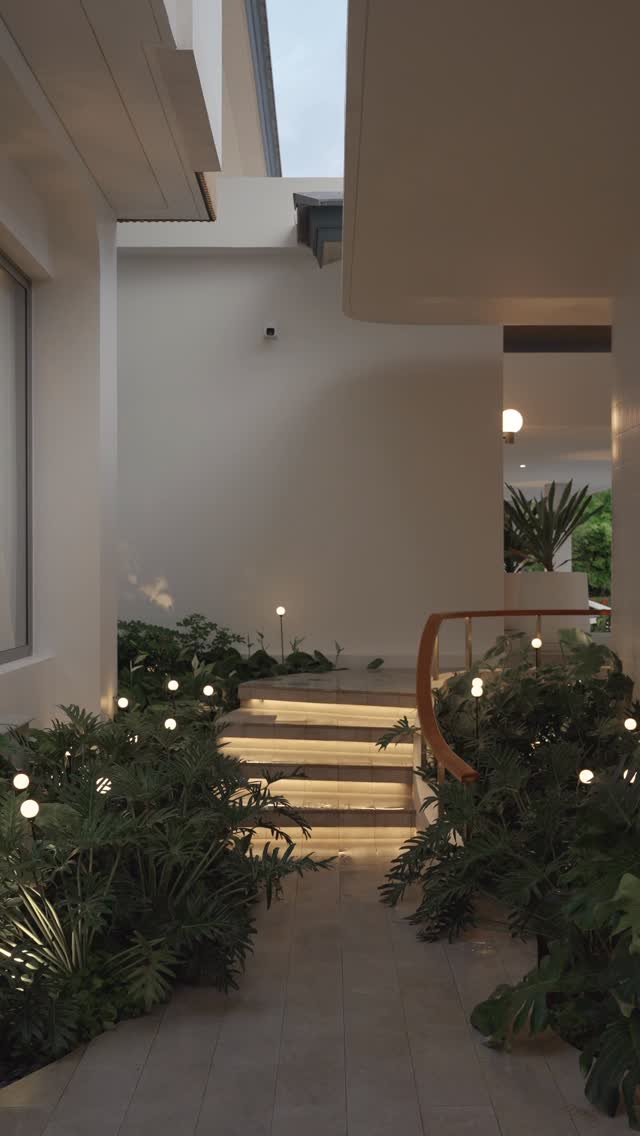 The lighting design enhances both safety and comfort, allowing the outdoor areas to be used at night with ease. At the same time, it frames beautiful views from within the house, enriching the outdoor living experience.