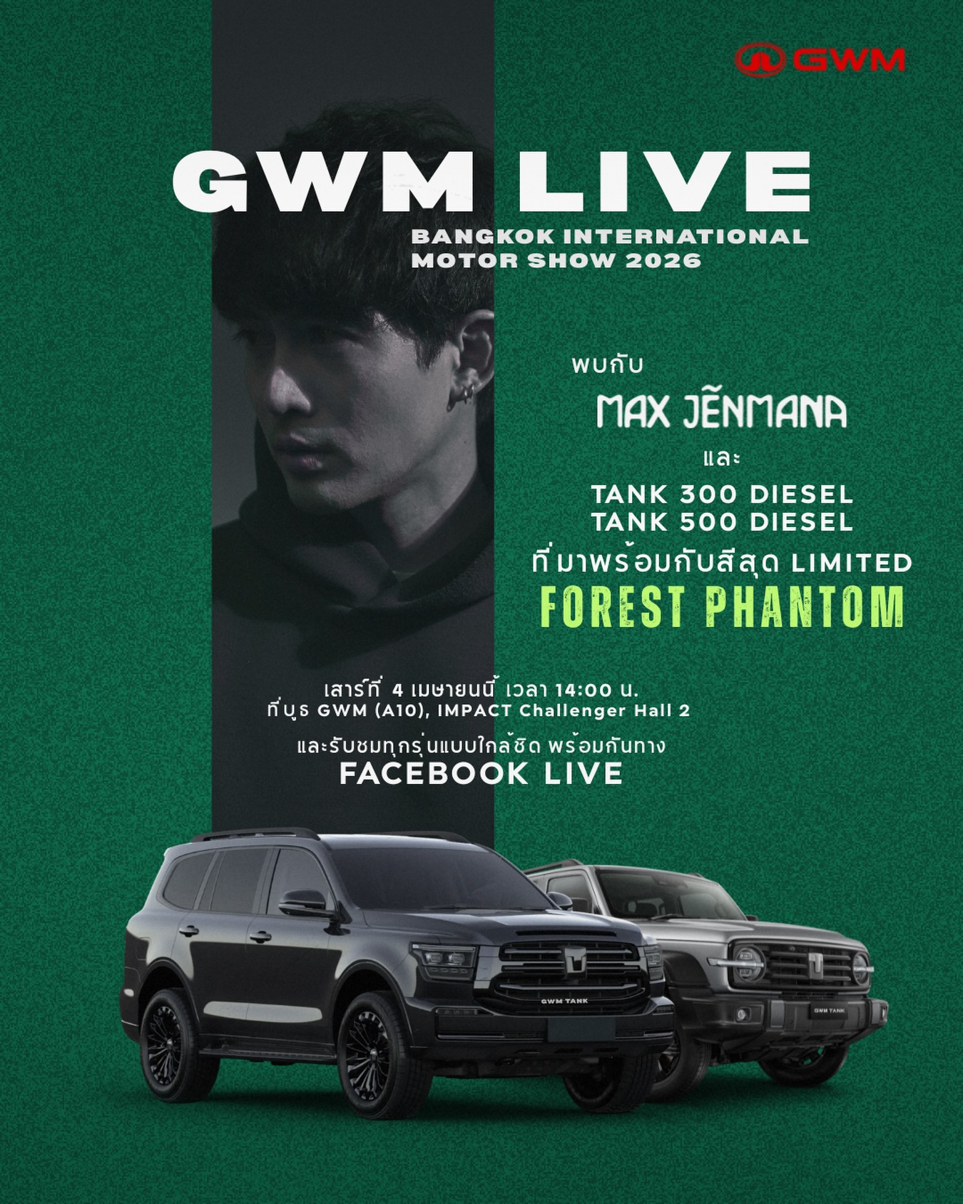 หรือดูสดพร้อมกันทาง Facebook Live เพจ MAX JENMANA รวมถึงสามารถลงทะเบียนทดสอบการขับขี่ได้ที่ GWM Thailand 📍