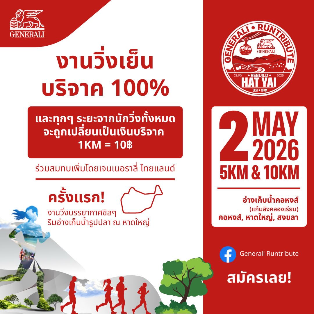 ขอเชิญชวนทุกคนไปร่วมวิ่งกับงาน 🏃♂️❤️ GENERALI RUNTRIBUTE: REBUILD HAT YAI