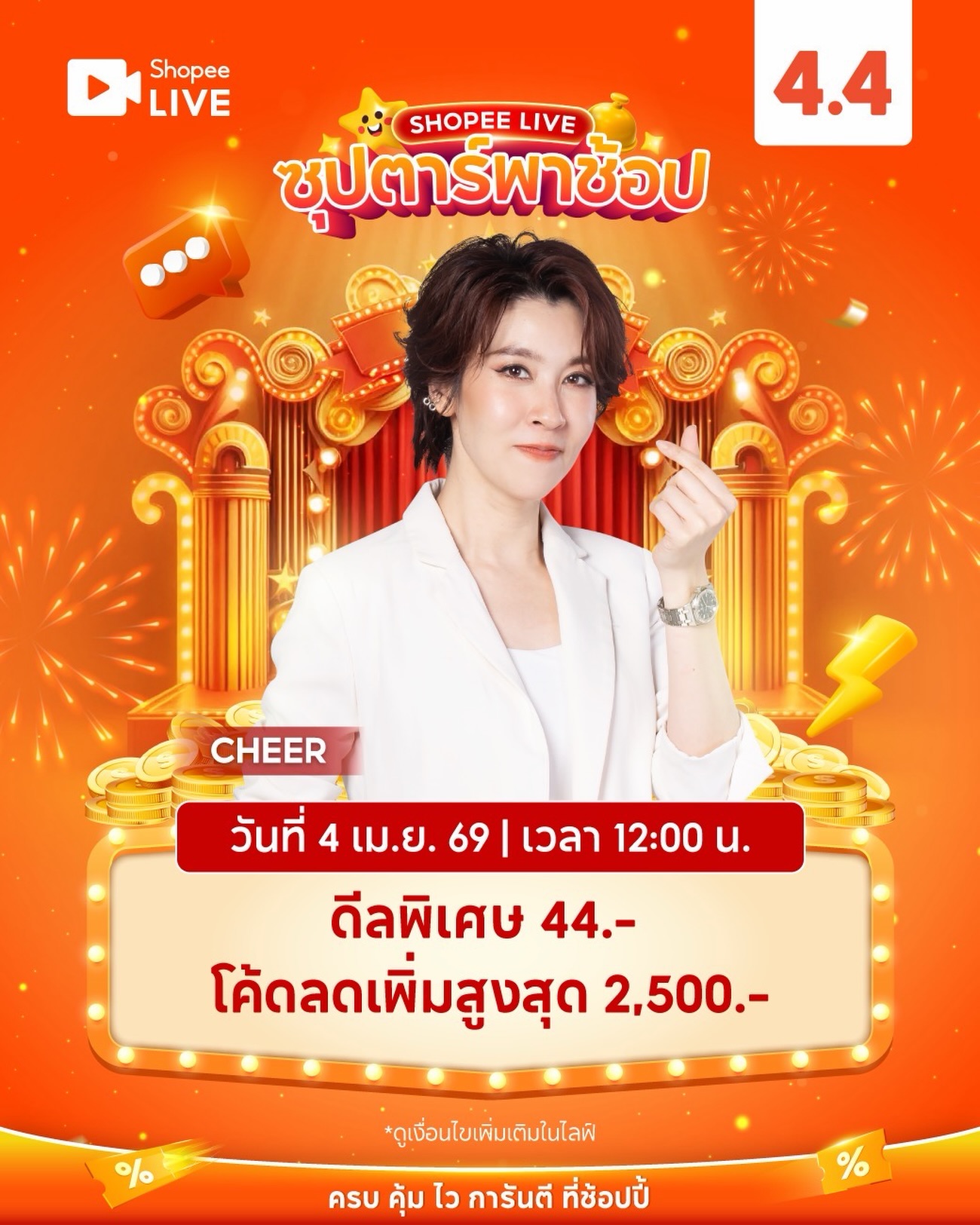 เที่ยงนี้มีดีล44บาท มาเลย!! https://shopee.co.th/Cheer-kol-live