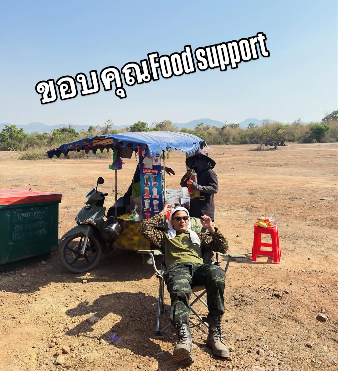 ขอบคุณ รถFood support ของแฟนคลับที่ส่งมาให้กลางทะเลทรายนะครับ ต้องบอกเลยหมดอ่ะ!!! มีกี่แก้วก็หมด เพราะอากาศที่นี่เหมือนหม้ออบความร้อน ผมรู้สึกมีความสุกมากครับ สุกทั้งข้างในทั้งข้างนอก ……… ผมเคยไหว้พระขอพรนะครับ ว่าปีนี้ขอให้ผมมีความสุขมากๆ ผมไม่นึกเลยว่าหลวงพ่อจะจัดความสุกให้กับผมเต็มๆแบบนี้ ….. อากาศที่นี่ดีมากจริงๆครับ……ดีที่ไม่ตายโว๊ย!!!!!!!!