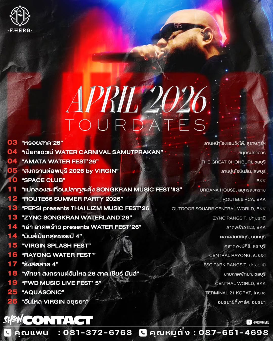สงกรานต์ไม่ลำพัง เพราะเพลงเราจะดังหน้าลำโพง เมษานี้พบกับความสนุกกับ F.HERO เต็มวง ได้ทุกที่ใกล้บ้านท่านครับ