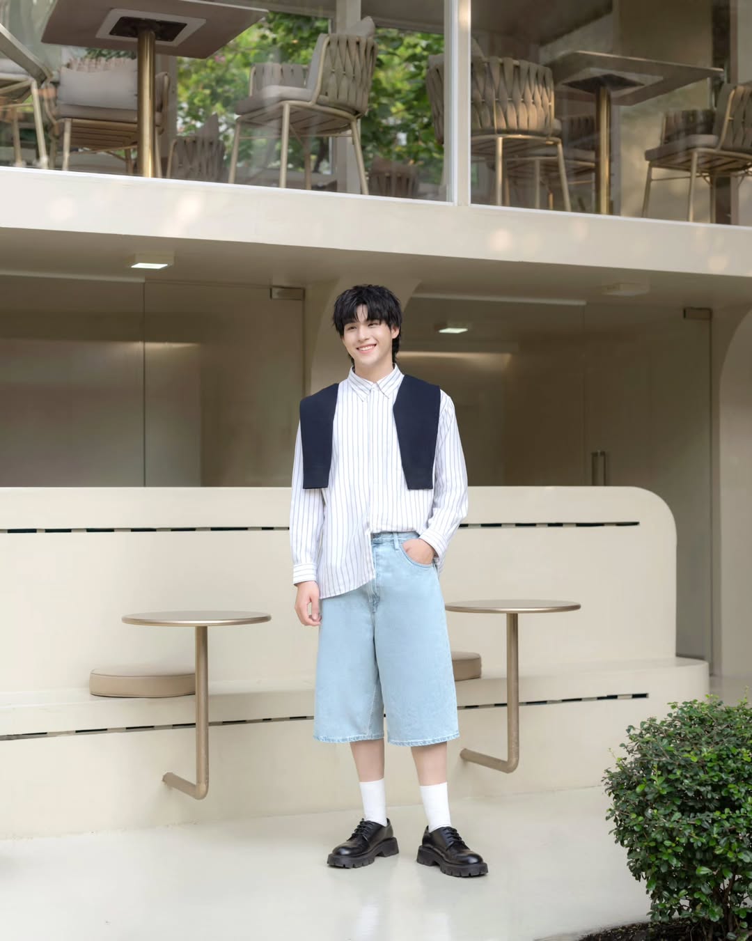 ซัมเมอร์นี้ สกายเลือกใส่กางเกงยีนส์ขาสั้น Jorts จาก UNIQLO เพราะทั้งทรงสวย ใส่สบาย แมตช์ง่ายทุกวัน ลองจับคู่กับเสื้อเชิ้ตแล้วพาดเสื้อสเวตเตอร์ให้ลุคสไตล์เพร็พพีแคชชวลมากขึ้น
