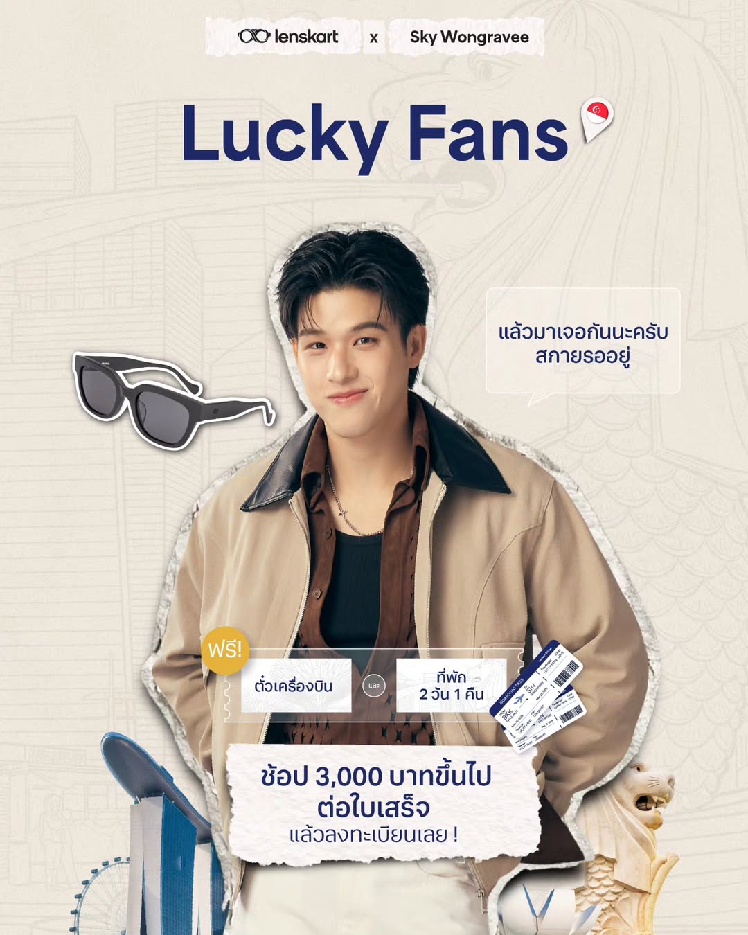 พุ่งตัวไปเลยที่ Lenskart! ซื้อสินค้าครบ 3,000 บาท มีสิทธิ์ลุ้นเป็นผู้โชคดีไปถ่ายรูปกันถึงที่สิงคโปร์เลยน้า~