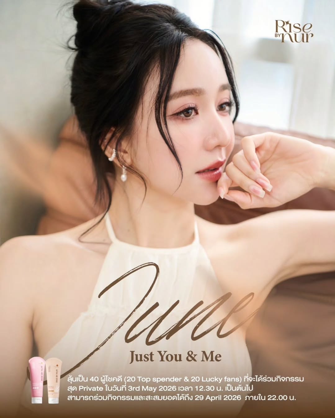 June just You & Me🥰❤️ @risebynur สำหรับผู้โชคดี 40 ท่าน (20 Top spender & 20 Lucky fans) ที่จะได้ร่วมกิจกรรมสุดprivate อย่างใกล้ชิด ในวันเสาร์ที่ 3rd May 2026 วลา 12.30 น. สามารถร่วมกิจกรรมได้ถึงวันที่ 29 april 2026 ภายใน 22.00 น. เท่านั้น