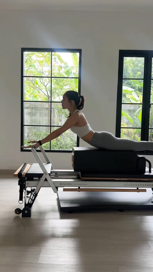 Upper body stretches on reformer 🍃 for better posture and less headaches