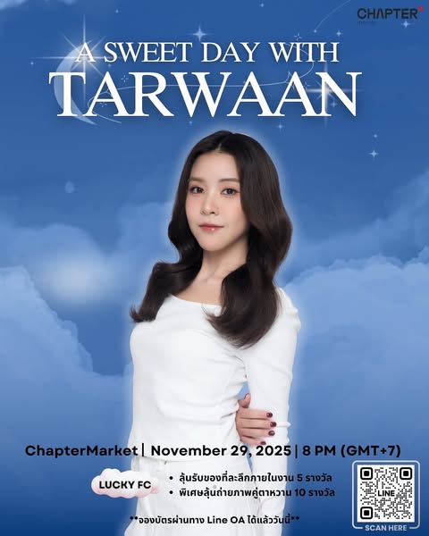 น้องกำลังซุ่มเตรียมของขวัญสุดพิเศษไว้ให้แบบตั้งใจสุด ๆ สำหรับแฟนคลับผู้โชคดีในงาน A Sweet Day with Tarwaan ที่ Chapter Market 🎁💗