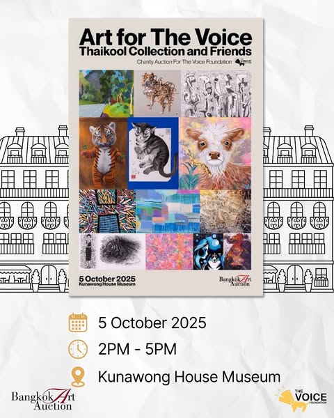 งานนี้จัดขึ้นโดย คุณราณี ซิมมะมัน และเพื่อนศิลปิน ร่วมกับ Bangkok Art Auction @bangkokartauction เพื่อสนับสนุน The Voice Foundation โดยเปิดพื้นที่ให้ศิลปินจากหลากหลายวงการ ได้ร่วมส่งต่อผลงานศิลปะสุดพิเศษ เพื่อระดมทุนช่วยเหลือสัตว์ที่กำลังตกทุกข์ได้ยาก