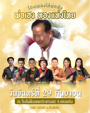 คืนนี้ (29 กย.68) ไปร่วมรำลึกถึง "พ่อเฮง ทองแท่งไทย" นักบุญแห่งขุนเขา..ผู้จากไป กับ คอนเสิร์ต มนต์แคน แก่นคูน เต็มวง พร้อมเหล่าศิลปินที่ต่างมุ่ง มาร้องเพลงให้พ่อเฮงฟัง..ไปพ้อกันเด้อครับ🤍🎶❤️#พ่อเฮงทองแท่งไทย#คอนเสิร์ต #โรงโม่หินเทพประทานพร#มนต์แคนแก่นคูน #เวียงนฤมล #เฟิร์นกัญญารัตน์ #เนมสุรพงศ์ #ดำดัสกร #ตัสชนะชัย #ครูสลา #พ่อ #รำลึก #ภูผาม่าน #ขอนแก่น8 399