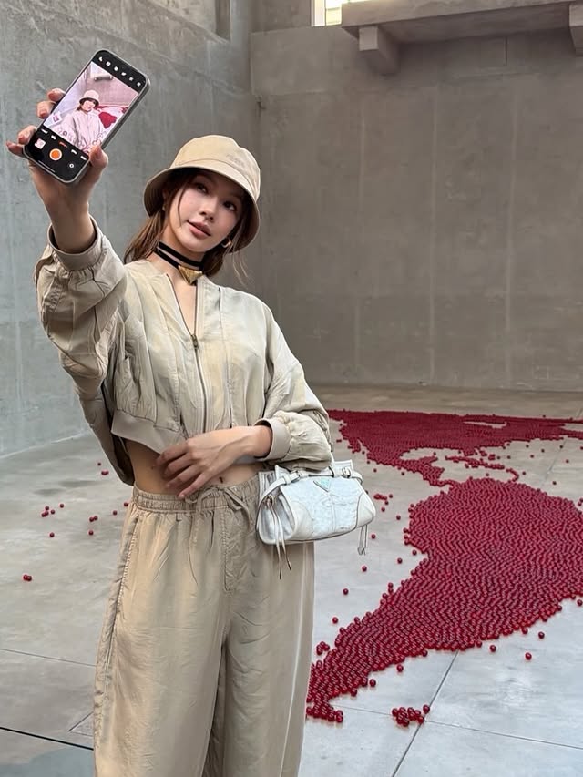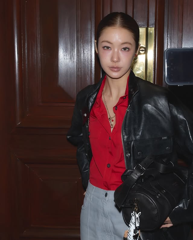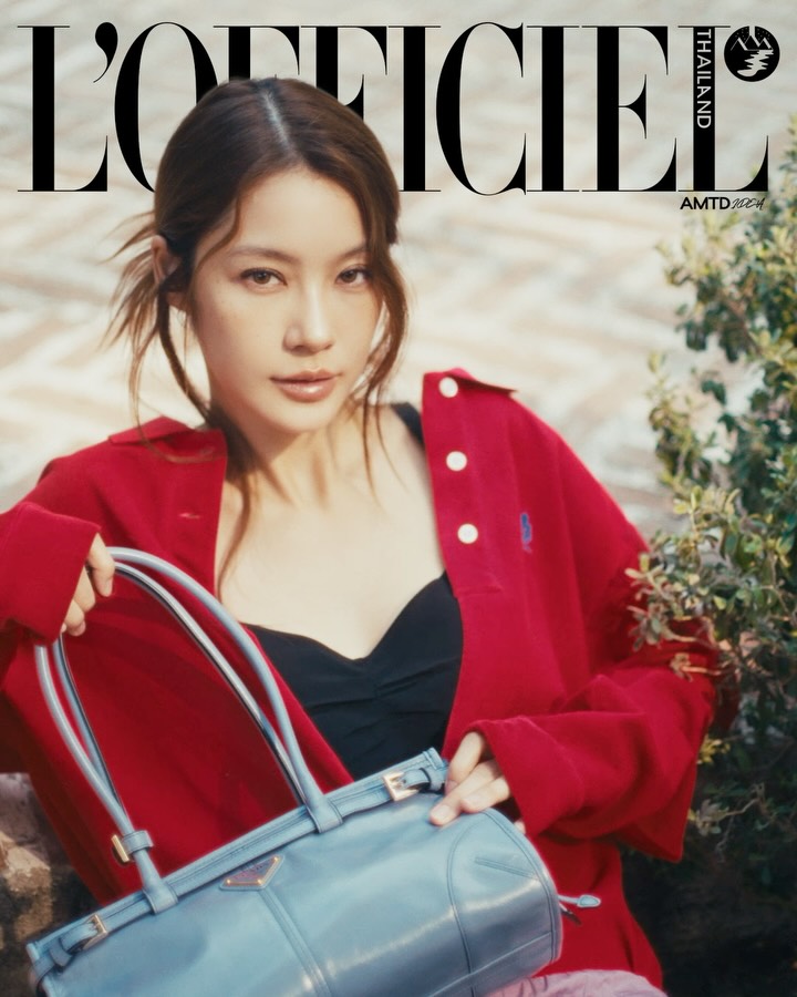 น้ำตาล-ทิพนารีมาในลุคเสื้อแขนยาวผ้าเจอร์ซีย์ปิเกต์สีแดง จับคู่กับเสื้อผ้าเครปเดอชีนสีดำและกางเกงขาสั้นผ้าป๊อปลินสีไลแล็ค มาพร้อมกับกระเป๋าถือรุ่น Bonnie หนังสีม่วงอ่อนสุดฮ็อต สะท้อนความหรูหราสง่างามในรูปแบบใหม่ ที่บ่งบอกตัวตนของผู้หญิงปัจจุบันได้อย่างร่วมสมัย