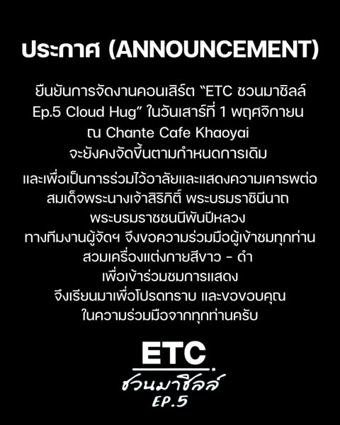 ยืนยันการจัดงานคอนเสิร์ต “ETC. ชวนมาชิลล์ EP.5 Cloud Hug”