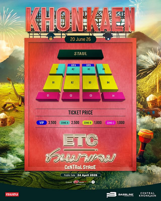 ผังที่นั่งคอนเสิร์ต ‘Central Stage: The Replay of ETC ชวนมาแจม’ จังหวัดขอนแก่น🎶