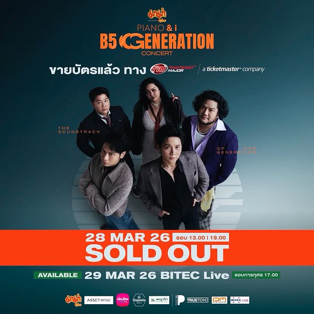ขอบคุณเพื่อนๆทุกคนที่คิดถึงกันนะครับ ตอนนี้ “มาม่า Presents PIANO & i B5 Generation Concert“ ในรอบทั่วไป Sold Out แล้วครับ 🤍🙏