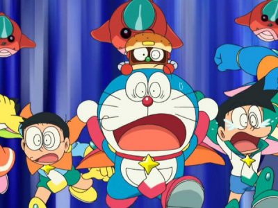 ขณะเดียวกัน อารอน (มารินะ อิโนะอุเอะ) มนุษย์ต่างดาวที่มองเห็นศักยภาพของคนทั้ง 5 ก็ได้มาขอให้ช่วยปกป้องดาวของเขา พวกโนบิตะที่ยังคิดว่านี่เป็นส่วนหนึ่งในภาพยนตร์ที่เบอร์เกอร์กำกับจึงตอบตกลงเดินทางไปในอวกาศกับอารอน จนกระทั่งระหว่างทางพวกเขาถูกโจมตีหลายต่อหลายครานั่นแหละ พวกเขาทั้งหมดจึงได้รู้ว่านี่เป็นภารกิจจริงๆ และพวกเขากำลังจะช่วยต่อสู้กับผู้ร้ายในจักรวาลของจริง