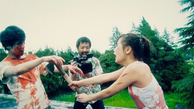 Filming of a zombie movie takes place inside of a warehouse. The mood there isn't very good as the results are lacking. The director and performers get emotional, so they decide to take a break. At that time, real zombies appear and begin to kill.