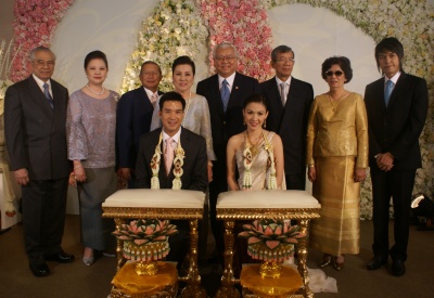 บรู๊ค "อย่างที่ผมได้เรียนไว้ครับ ผู้ใหญ่ที่มาเป็นผู้หลักผู้ใหญ่ทั้งนั้น และผมก็เกรงใจญาติๆ หลายท่าน ซึ่งสูงอายุแล้ว อย่างปู่ผมก็ 95 แล้ว ก็ตัดผมตั้งแต่สามวันที่แล้ว จะมางานผมให้ได้ ส่วนคุณย่า 92 ปี เดินไม่ค่อยไหว เป็นงานที่อยากให้ผู้ใหญ่มา เรามีความรู้สึกว่างานหมั้นและงานรดน้ำนั้น มีความสำคัญมากกว่างานเลี้ยงตอนเย็น เราได้ใช้เวลากับผู้ใหญ่ให้รดน้ำอวยพรเรา มากกว่าที่มายืนถ่ายรูปแล้วบางท่านก็กลับ เราอยากอยู่กับผู้ใหญ่ให้นานๆ"