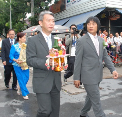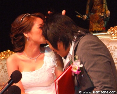 จนกระทั่งเวลาประมาณ 10.00 น. นายทะเบียนจากสำนักงานเขตบางรัก ก็เดินทางมาทำพิธีจดทะเบียนสมรสให้ทั้งคู่ หลังจากคู่รักได้ประทับลายเซ็นเป็นสามีและภรรยาอย่างถูกต้องตามกฎหมาย เปิ้ล และ จูน จึงได้เปิดใจให้สัมภาษณ์ต่อหน้าบรรดาสื่อมวลชน