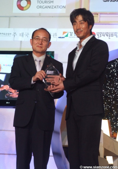 ฟิล์ม "อย่างแรกก็ต้องขอขอบคุณทางรัฐบาลเกาหลี และการท่องเที่ยวของประเทศไทยด้วยนะครับและของเกาหลีด้วย รู้สึกดีใจมากครับ ที่จริงผมไปเกาหลีบ่อยมากนะครับ รู้สึกผูกพันและชอบครับ ได้ไปทำงานและไปเที่ยวส่วนตัวด้วยครับ ยิ่งได้รับรางวัลนี้มายิ่งรู้สึกเป็นเกียรติมากๆ ครับ"